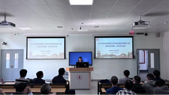 邓英娟老师传达了2024年学校财经工作会议相关精神,她围绕“聚焦财务战略、共谋学院发展”的主题,通报了学校开源节流的工作部署和中央财经专项检查的结果情况,强调2025年预算编制工作的重要性,分析了预算执行、项目储备等财务工作存在的问题。