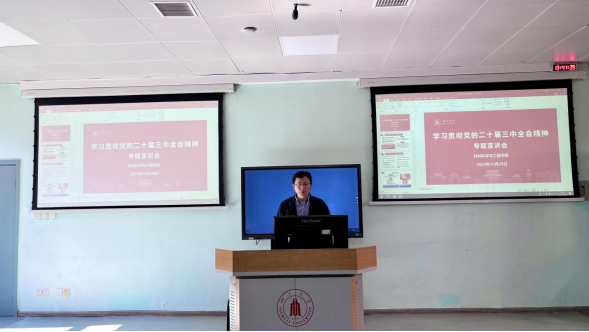 徐海鑫传达了传达学习党的二十届三中全会精神和全国教育大会精神、学校党委九届四次全会精神和新学期工作布置会精神。重点传达了校党委书记甘霖、校长汪劲松等校领导的重要讲话精神,他指出,要深刻领悟党的二十届三中全会精神和全国教育大会精神,聚焦学校2024年四项重点工作,认真贯彻学校党委九届四次全会精神和新学期工作布置会精神,并根据学院实际情况,明确材料学院在学校总体发展中的的核心任务与使命,统筹推进学院各项事业发展,着力提升核心竞争力。