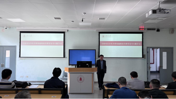 张和民老师作学院实验室安全专题教育,他指出,要提高安全意识,认真落实学院安全工作条例,进一步明确安全责任,进行安全排查,消除安全隐患,为学院日常教学科研工作营造安全稳定的环境。